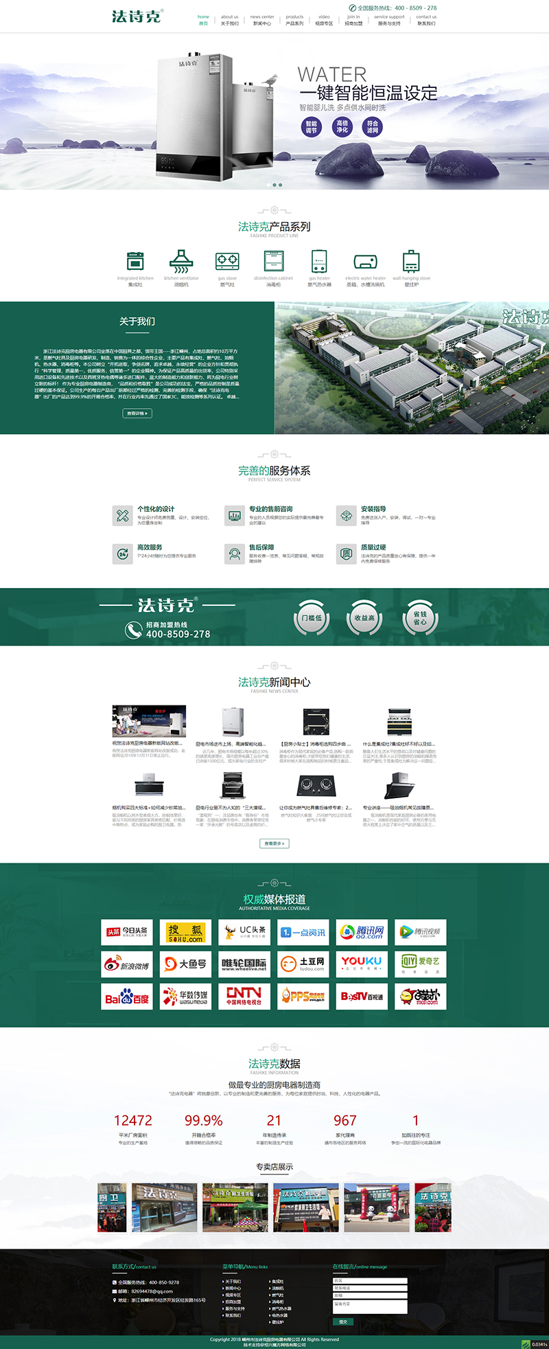 法帝電器有限公司官網網站為高端定制網站,設計風格采用法式浪漫主義風格,總體感覺奢華、大氣,網站多處采用動態特效,很好的體現了公司的品牌、產品定位。??